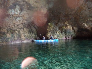 波もなく潮位もちょうど良かったので今日のやどかり島シーカヤックツアーは「裏メニュー」の洞窟の中をカヤックで入ることが出来ました(・∀・)
