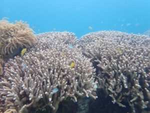 今までブルー一色だったのが、黄色いネッタイスズメダイが混ざりとてもカラフルに(・))<<