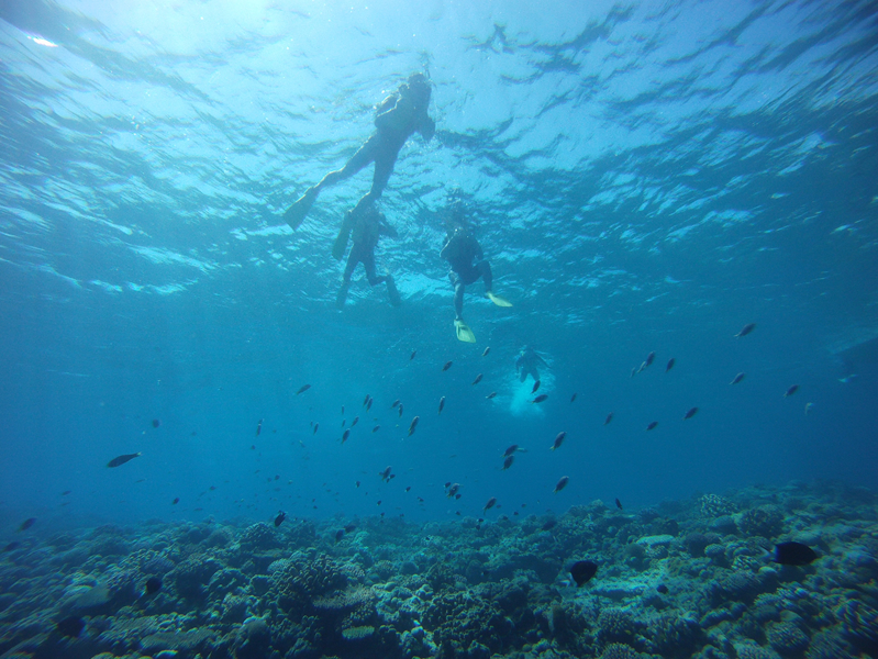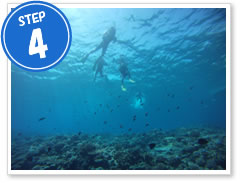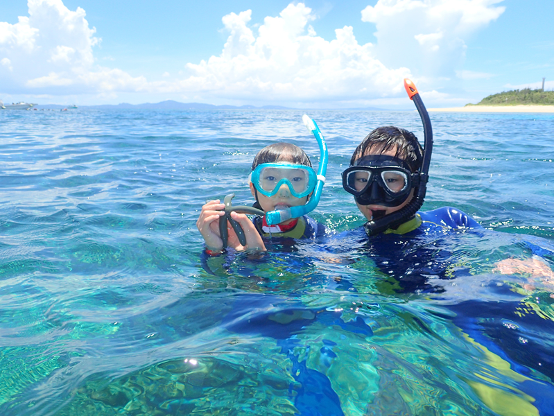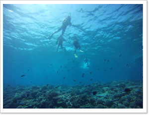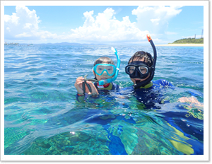 サンゴ礁の海でシュノーケリング!その日の海況にあわせてベストポイントを選びます。