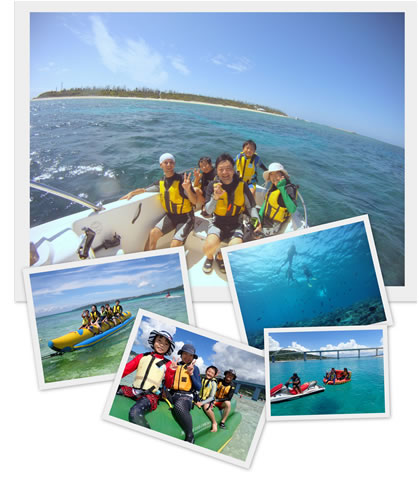 離島ならではの透明度、沖縄随一の真っ青な海でシュノーケリングにバナナボート!!オプションでウェイクボードやフライボードなども体験可能な欲張りプラン!