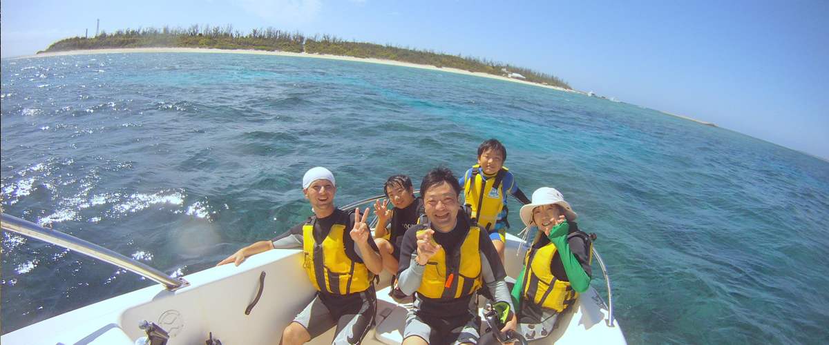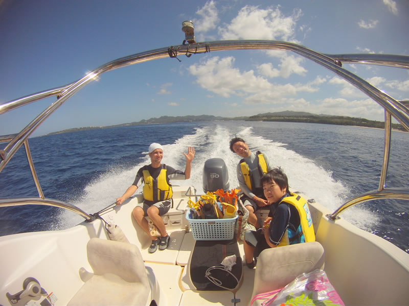 さー海へ出発です! 自社スピードボートで水納島周辺の海へ。