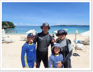 安全に楽しんで頂くための注意事項の説明。道具の使い方とシュノーケリングの練習。